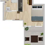 Enjoy the comfort of a bathroom in this 23 m² apartment, which is equipped with a hairdryer and bath sheets. Additionally, you'll find a walk-in shower and a separate toilet.